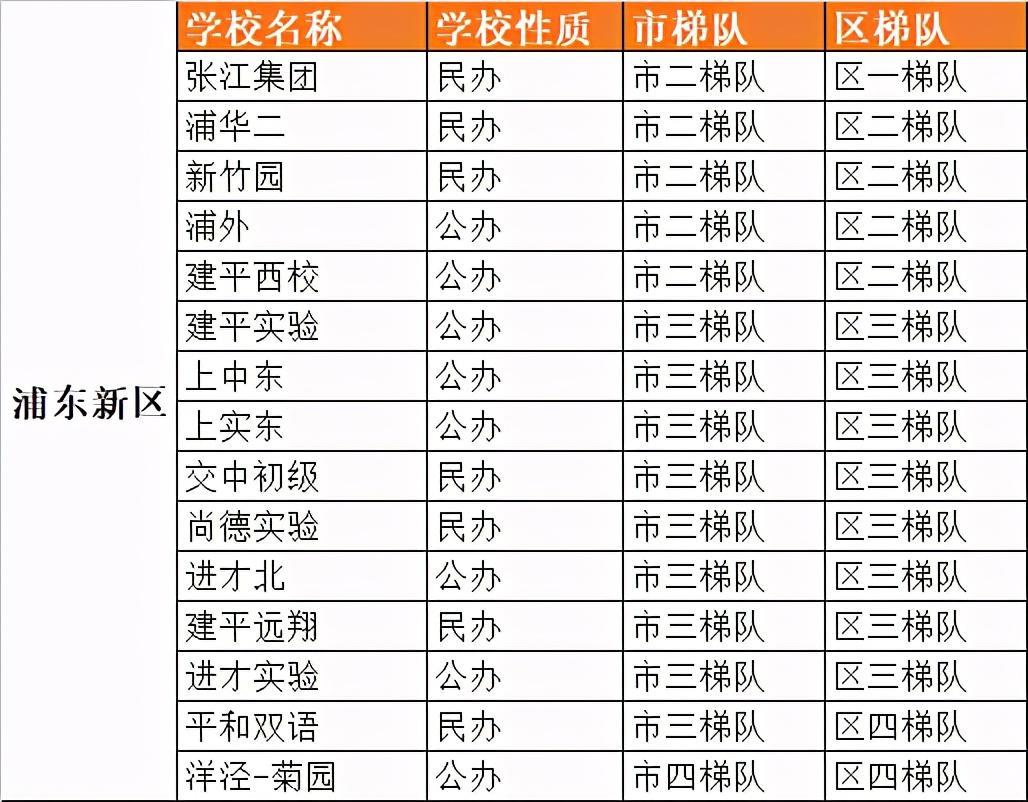 浦东新区初中梯队排名