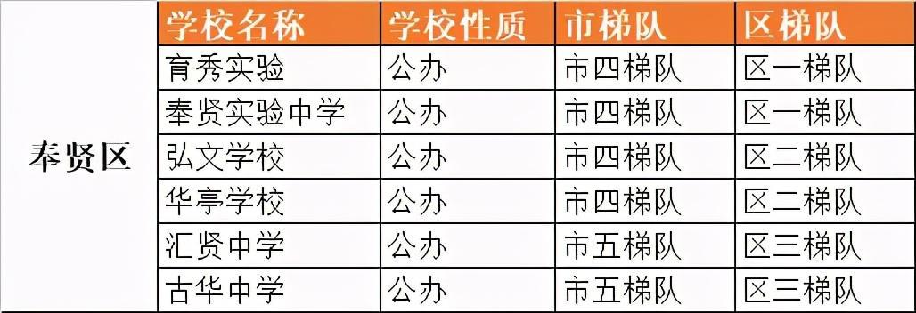 奉贤区初中梯队排名