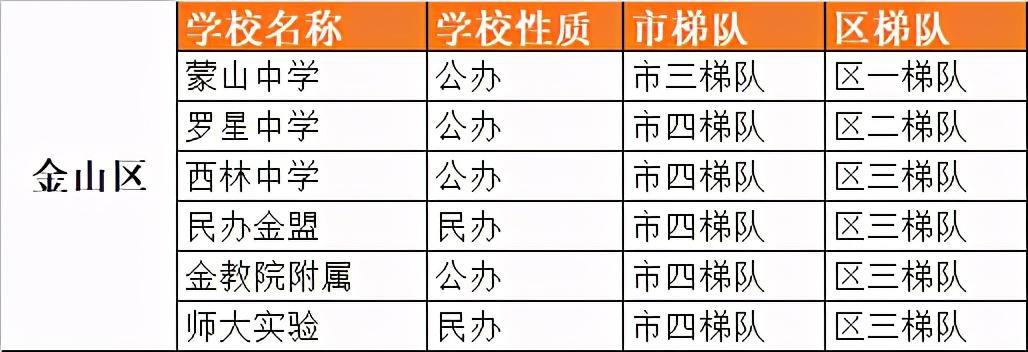 金山初中梯队排名