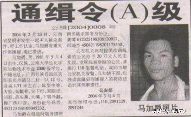 七、全国通缉,很多人说,这辈子见过的第一个全国A级通缉令就是马加爵的