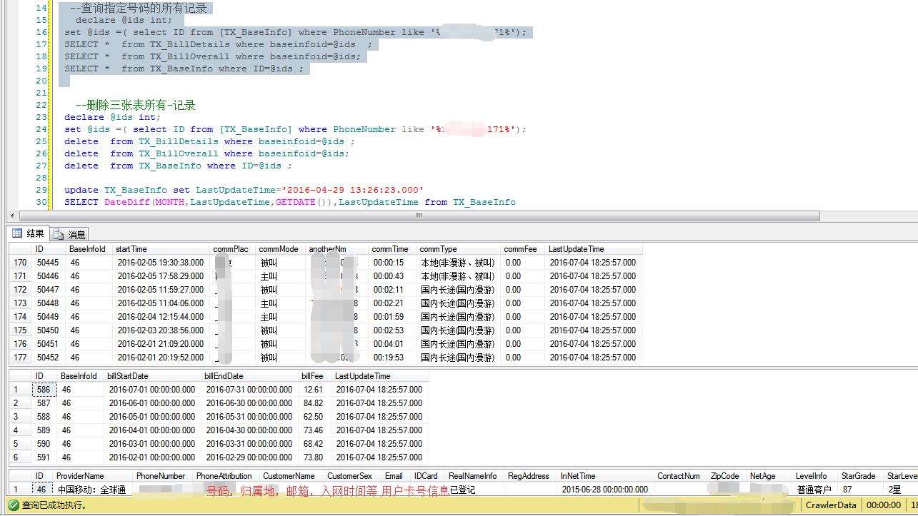 3.整个过程,包括重建数据库表结构,解析json等如同逆向运营商的数据库一般。总体来说,三大运营商更新频率不算频繁,还算较稳定,数据结构,网页结构等都不会做很大的变动。