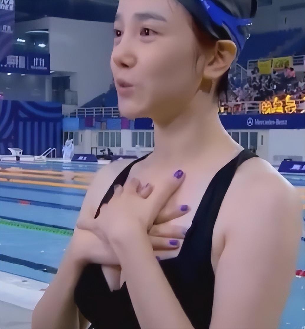即使之后在《超新星全运会》中,游完泳的陈小纭走出泳池之后也是双手捂住胸口急匆匆的离开。