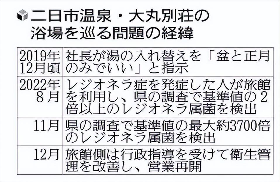 2022年8月,一名游客在大丸别庄泡完温泉后感觉到身体不适,随后被查出感染了“军团菌”。