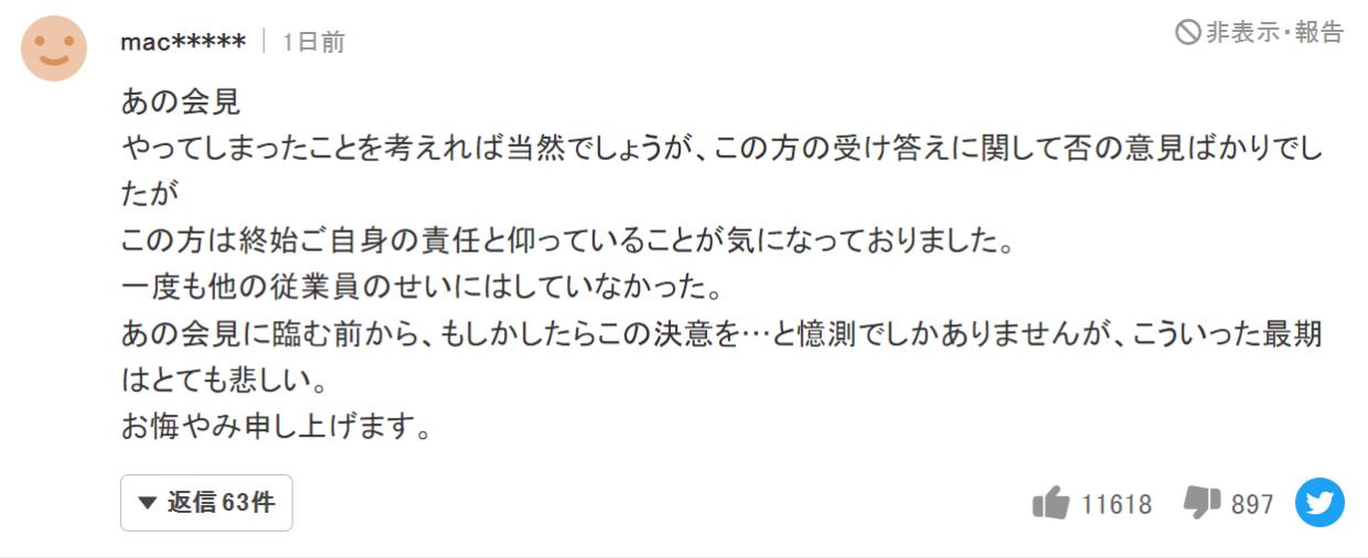 但是,谁也没想到山田真在辞职之后,竟然真的会“自杀谢罪”……