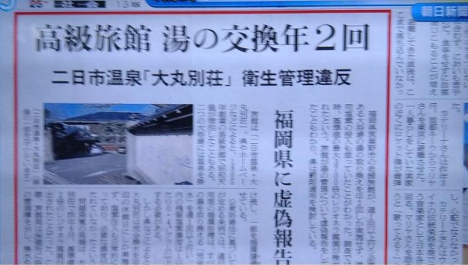 在不久之前,当地最豪华的温泉旅馆“大丸别庄”被曝出一年只换两次水、细菌含量超标3700多倍……