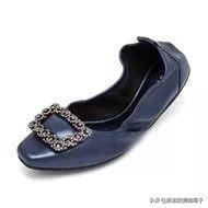 1318-6 小牛皮方扣平底芭蕾鞋 深蓝色