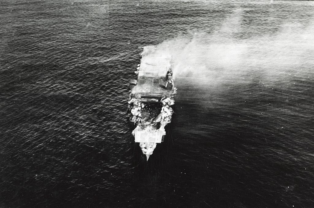 ▲中途岛海战期间即将沉没的日本海军飞龙号航母