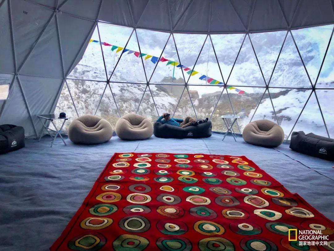 去年,某登山公司在大本营搭起巨大的圆顶帐篷。