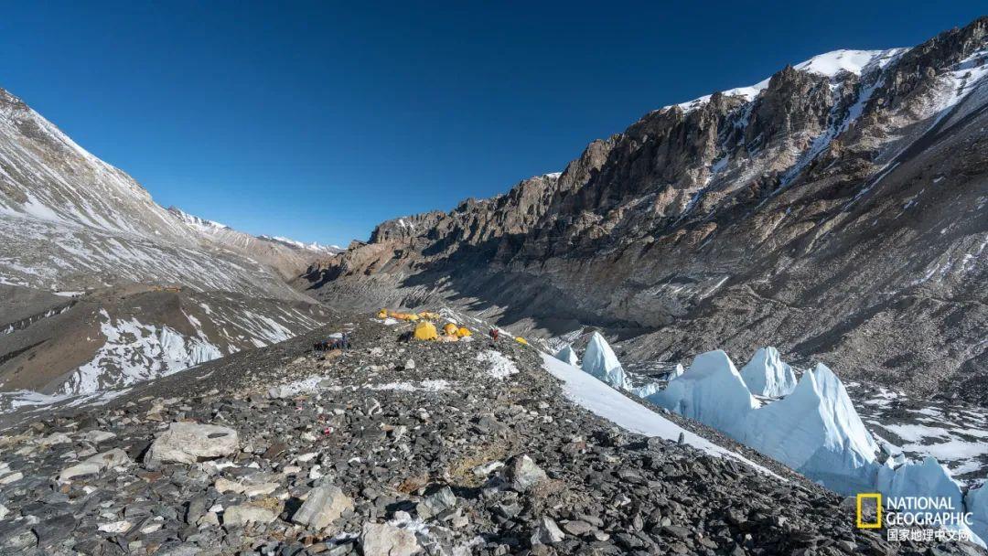 5800米的过渡营地,紧靠着蓝色的绒布冰川。
