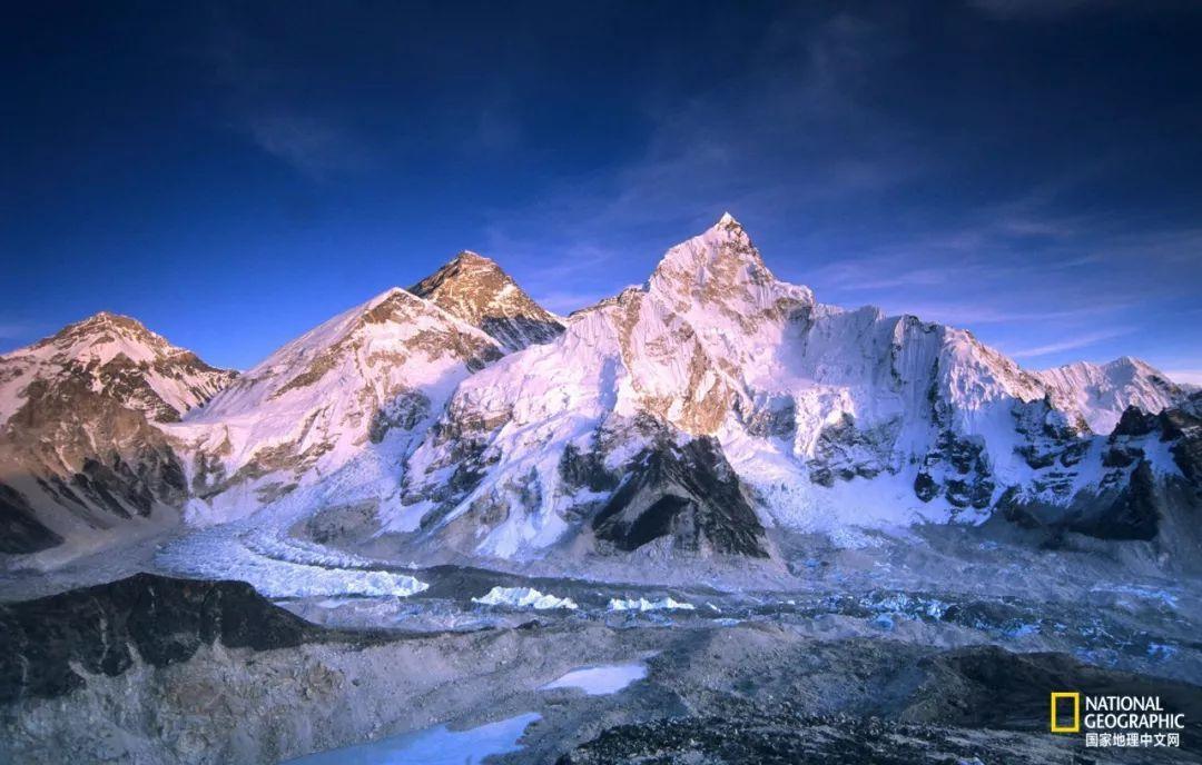 蓝色的绒布冰川,绒布冰川发育在珠峰脚下5300—6500米的区域,分为东绒布冰川和西绒布冰川。