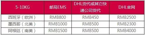 海运的价格非常便宜,例如10kg的包裹,EMS选择空运水陆路包裹或者水陆路包裹的话,到西班牙的费用只需要RMB500,到南美需要500-600元左右,到墨西哥甚至只需要RMB300!
