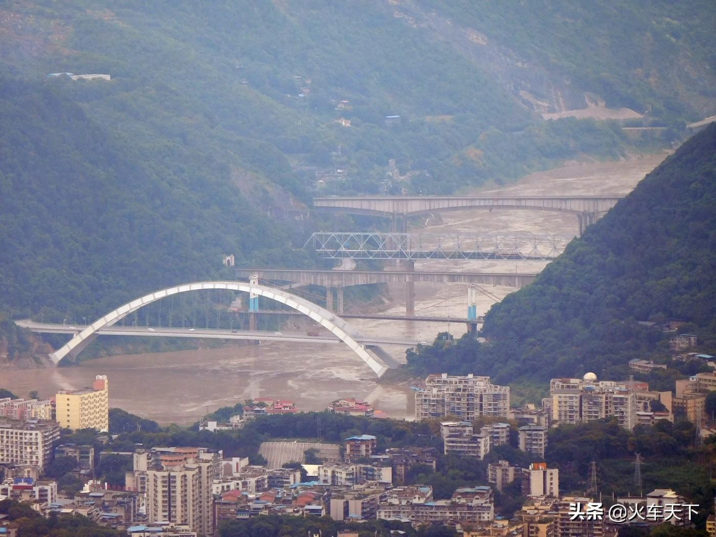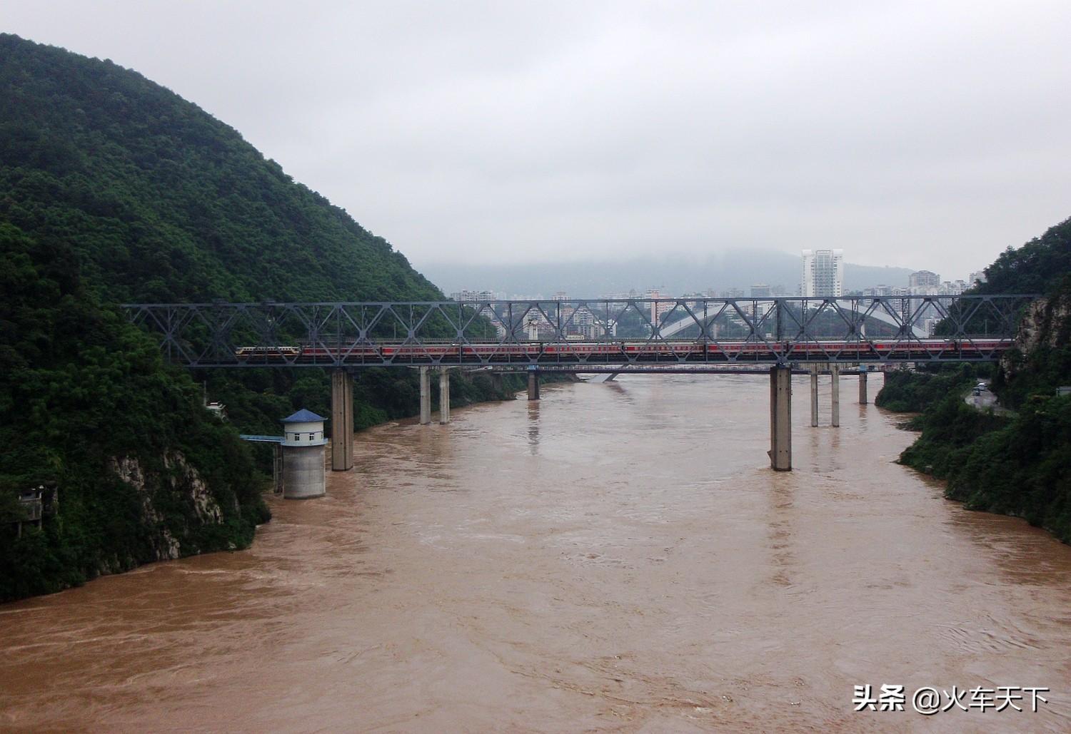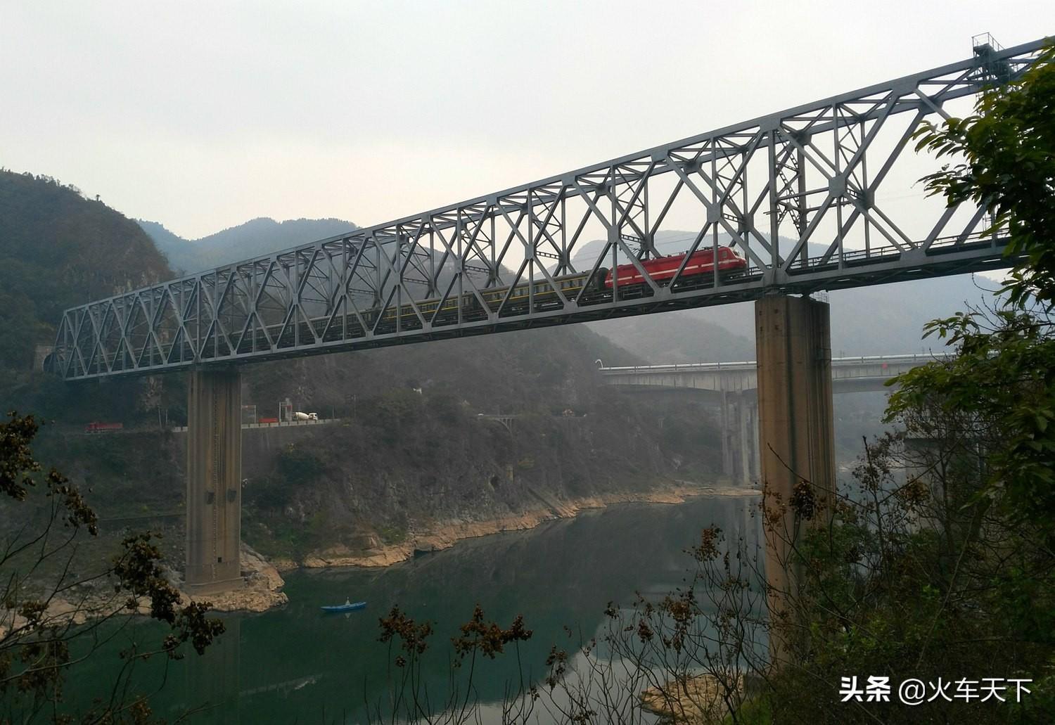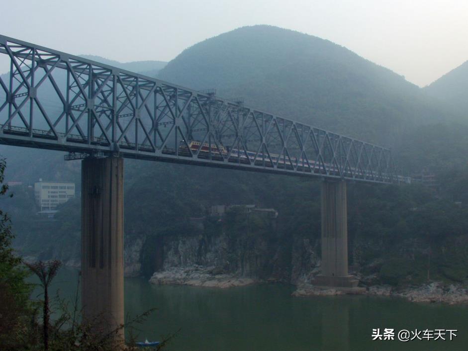 襄渝铁路北碚嘉陵江大桥建成于1970年,在磨心坡站与北碚站之间,从观音峡中穿过,桥梁两端都与隧道相连,也是襄渝线上具有代表性的地方之一。以前乘坐火车走襄渝线,出去的时候经过这座钢梁桥就明白即将离开重庆,而返回的时候经过这座桥就知道离重庆市区越来越近了。过去襄渝铁路是单线,所以上下行列车都会经过这座大桥,也拍到过一些客车经过此桥,这张是以前重庆到汉口的T258次列车经过此桥的画面。