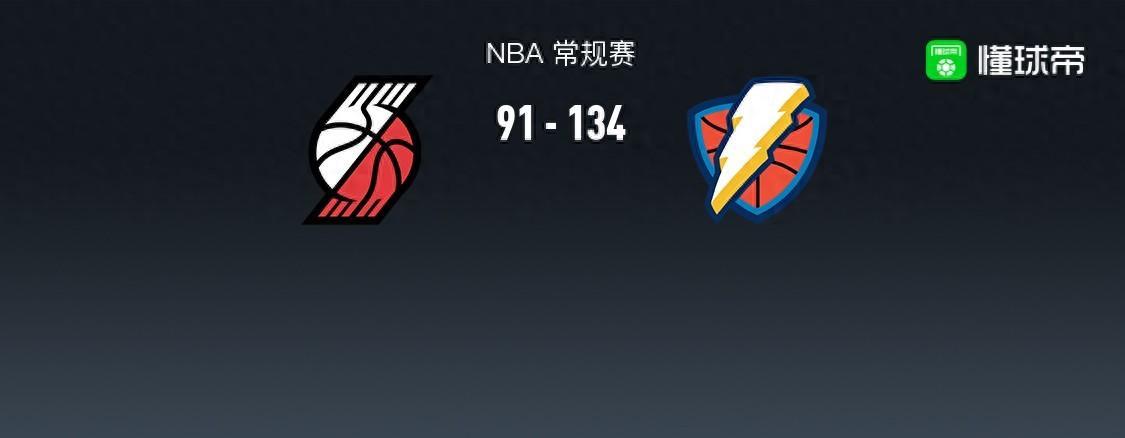 第四节开拓者米纳亚拿下7分,雷霆沃特斯拿下9分,最终开拓者91-134不敌雷霆