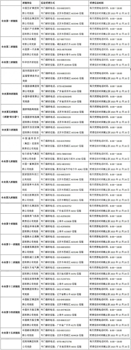 截至目前,中央巡视组已进驻32家单位,并公布了信访联系方式。
