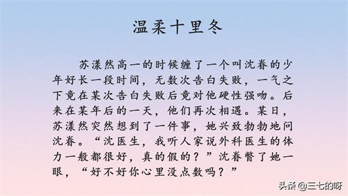 男主沈眷,医生,女主苏漾然,作家,久别重逢文。