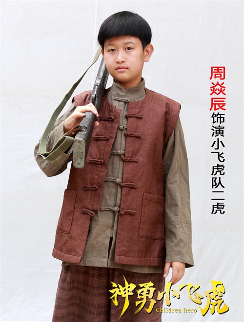 下面给大家介绍第二位领衔主演周焱辰,今年11岁,在《神勇小飞虎》中饰演二虎,也就是小飞虎队的副队长。在剧中性格直率,跟着爷爷学过武术,想与小飞连手学大人打鬼子。
