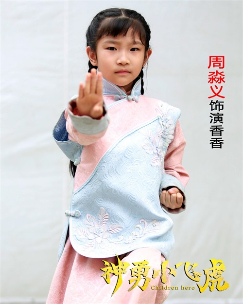 下面给大家介绍第四位领衔主演周淼义,今年才6岁,在《神勇小飞虎》中饰演香香,可爱善良,在剧中演的财主的女儿,可是她想和其他小朋友一起对付鬼子。