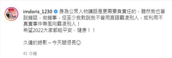 赖薇如再度隔空喊话。(图/翻摄自Instagram/imdoris_1230)