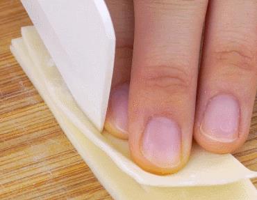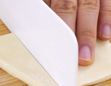 1.3张馄饨皮叠在一起,将馄饨皮切成长方形。