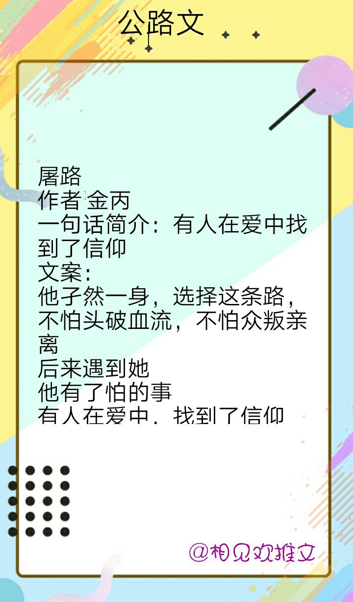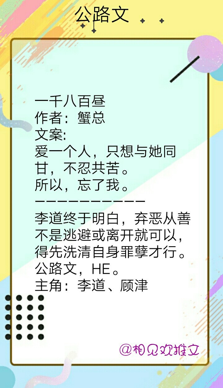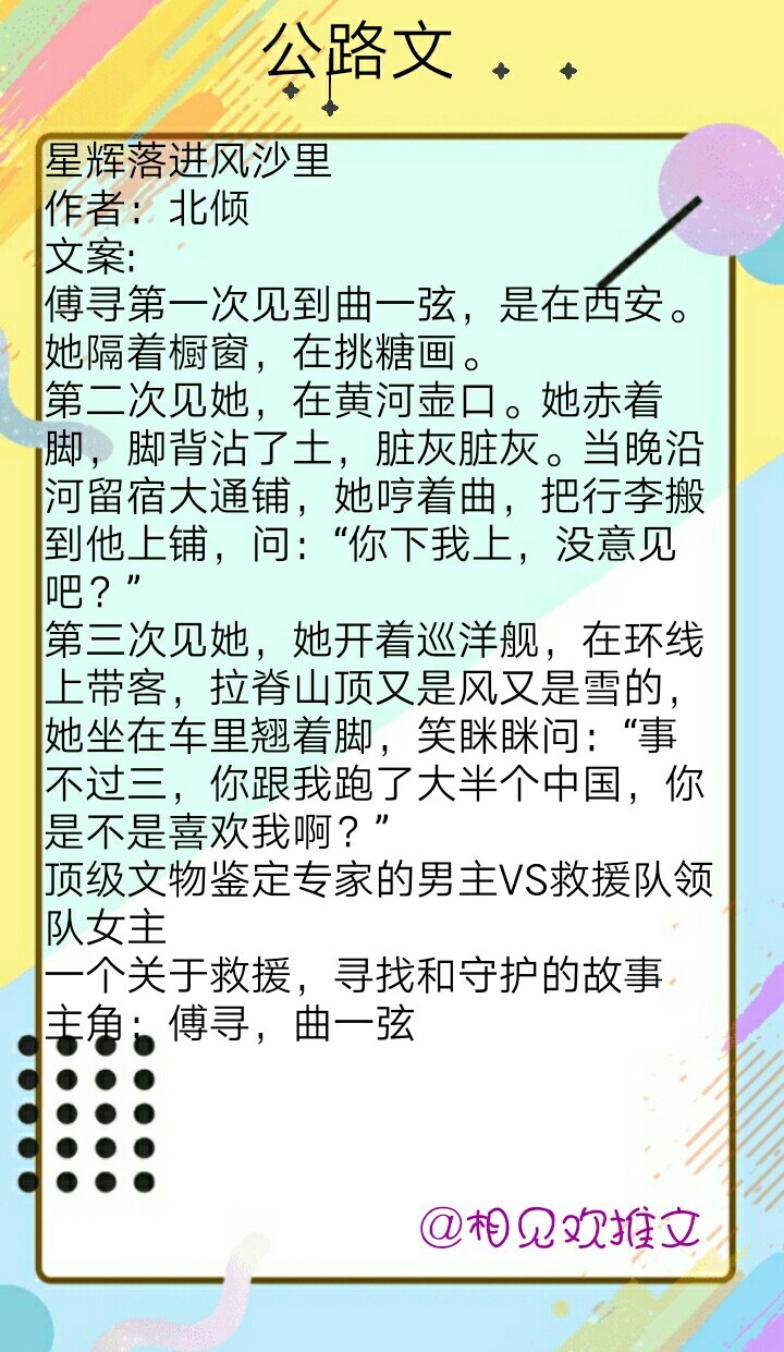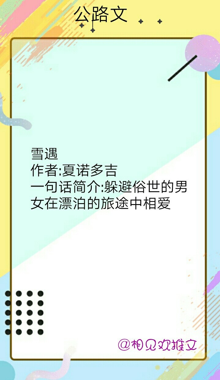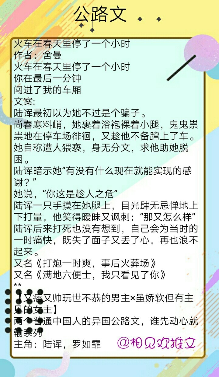 人生就是一段旅途,在途中遇见对的人,一起去看山清水秀,慢慢体会细水长流,总有明天过后,这就是公路言情文的魅力吧,喜欢这类文的快留言领资源哦~(留言、转发可以帮我带动阅读量,感谢大家~)