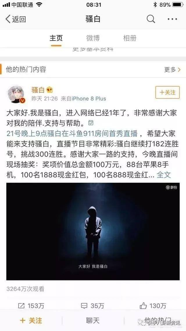 然后再来谈谈骚白,首先需要明确的一点是,骚白背后肯定有团队在运作,因为现在的主播,除开打职业出身的,基本上所有的草根明星都会签约公司,这是毋庸置疑的,签了公司,可以针对你做出合适的运营手段,让主播的身价提升并有资格在圈子里活下来。