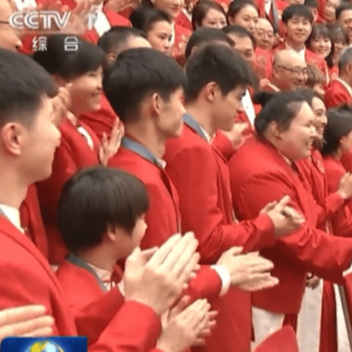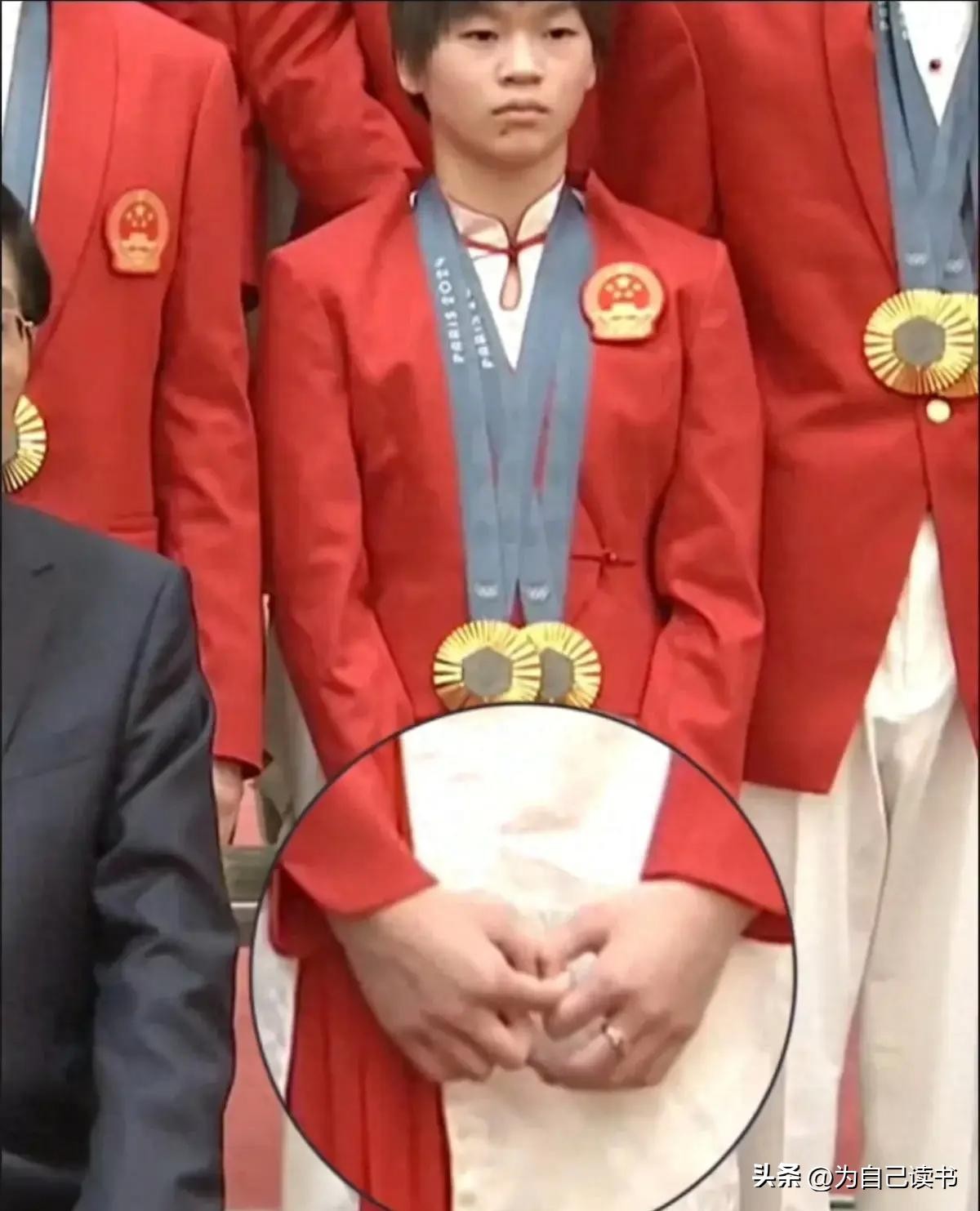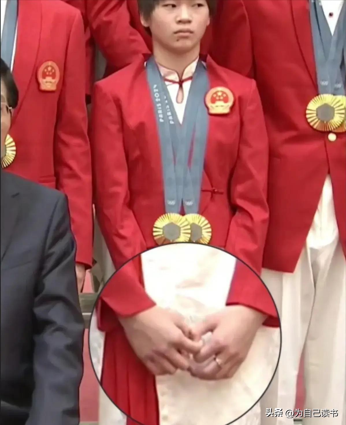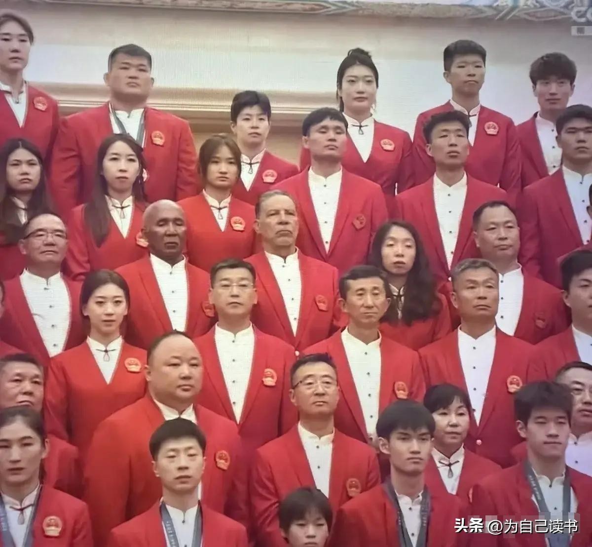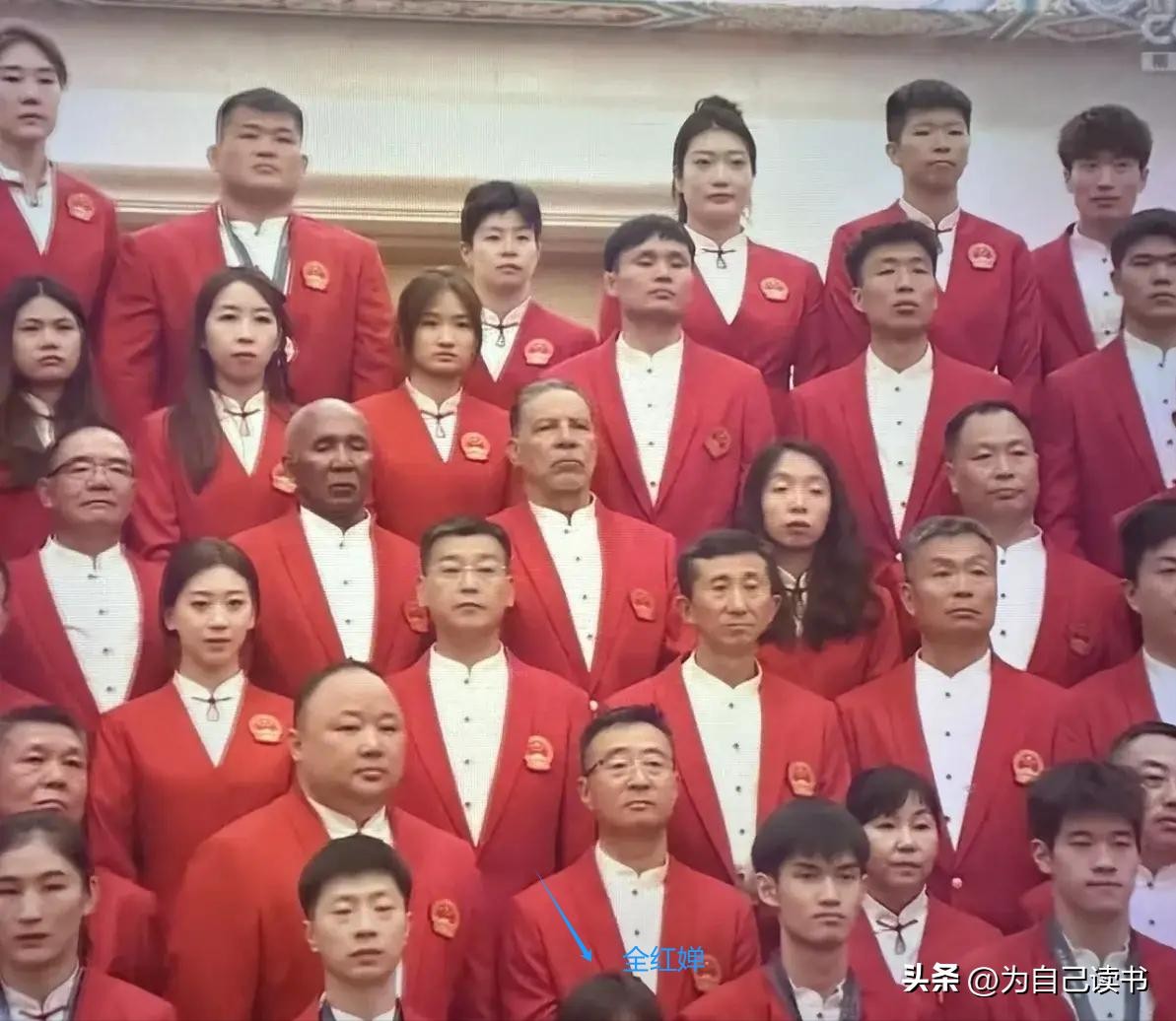 奥运会表彰大会大合影,全红婵站第二排C位,紧张得一直在抠手