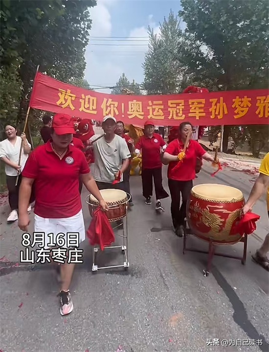 镇民们涌上街头,簇拥着孙梦雅,都想近距离端详这个了不起的冠军。