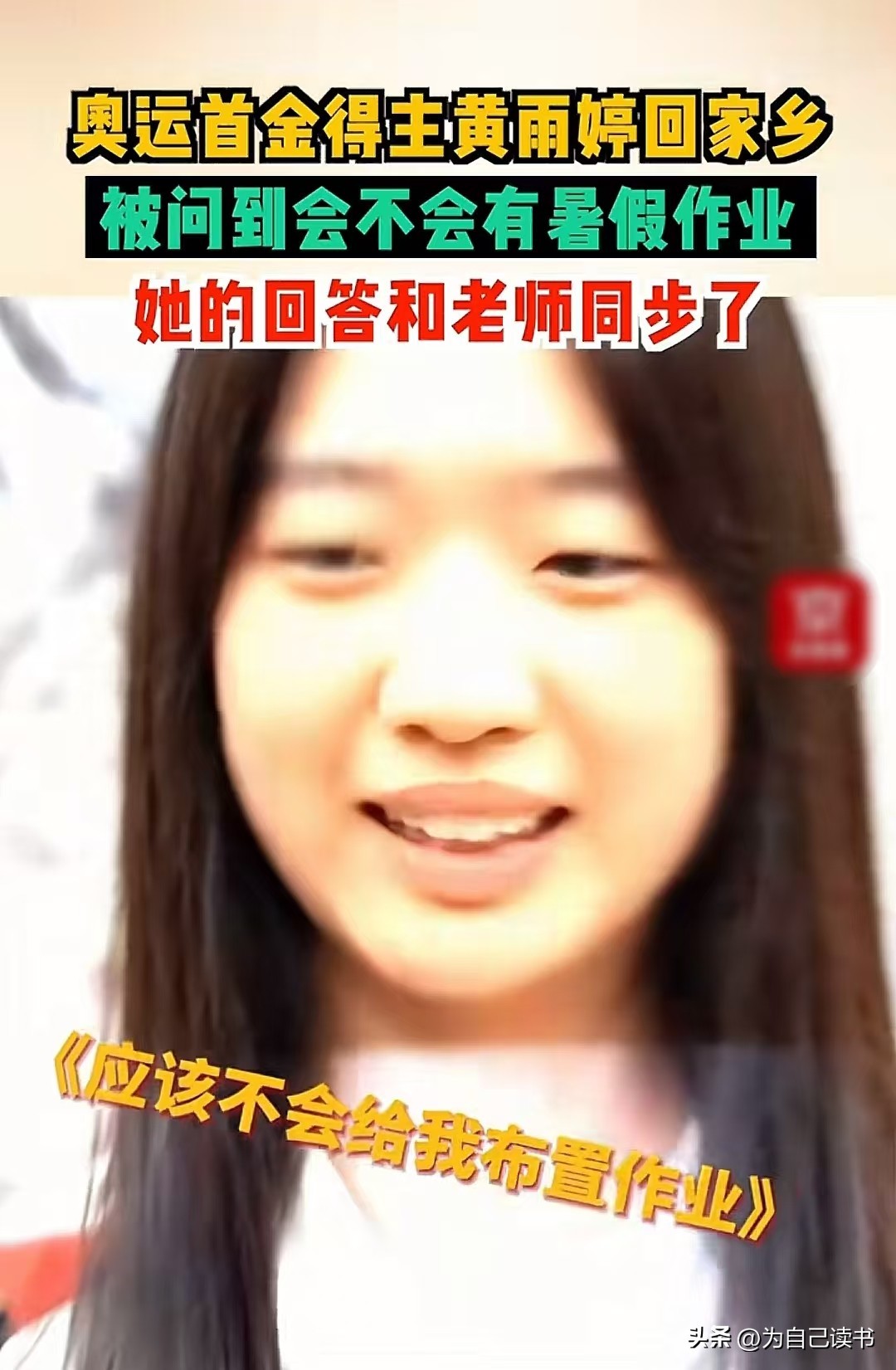 还没有高中毕业的黄雨婷一回家就被调皮的记者询问暑假作业的进度。