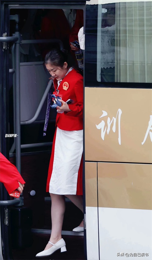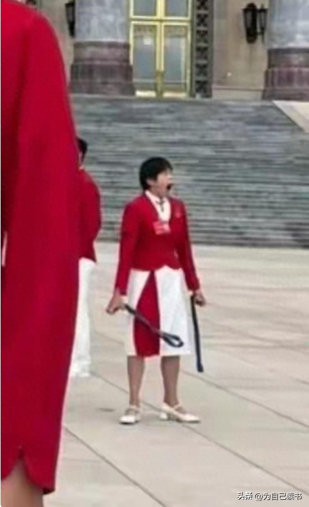 她站在运动员队列的第一排,面对相机时的表情“坚定得像是要入党”。