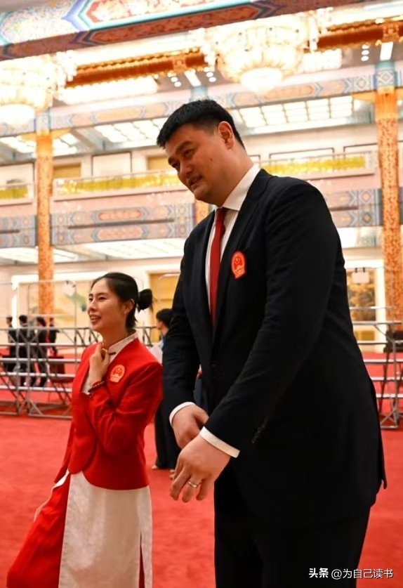 有人拍到在一众红色的队服中,姚明“孤零零”地站着。