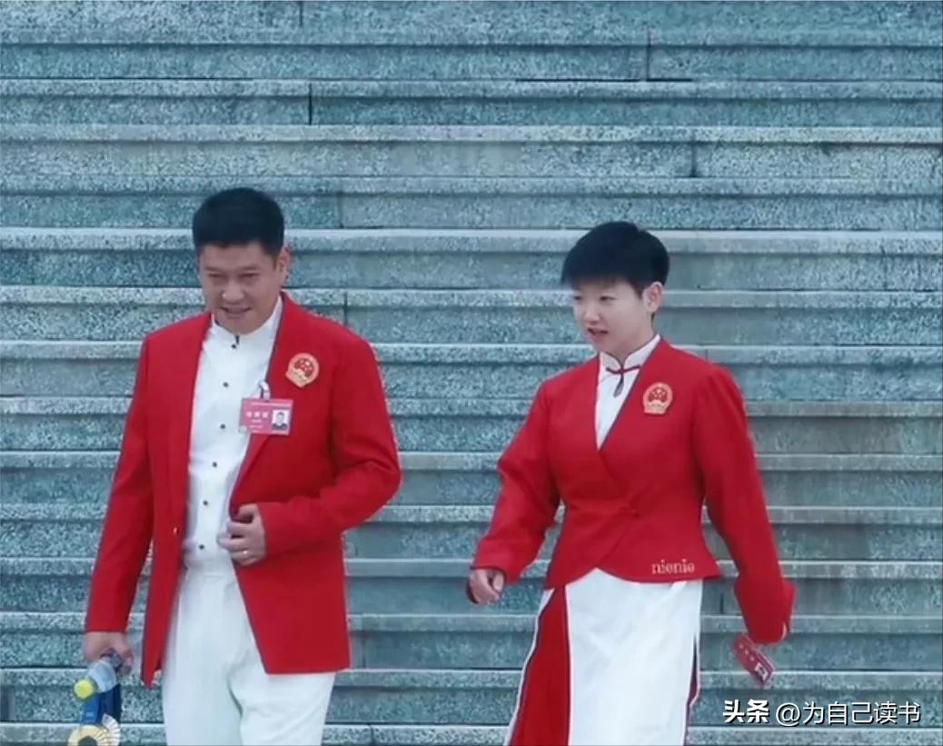 孙颖莎与师傅邱贻可从台阶上缓步而下。