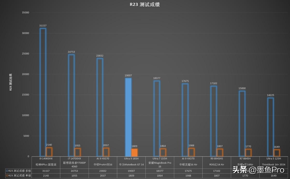 在R23跑分中,MateBook GT 14的表现不错,在14寸轻薄本中属于非常出色的性能。