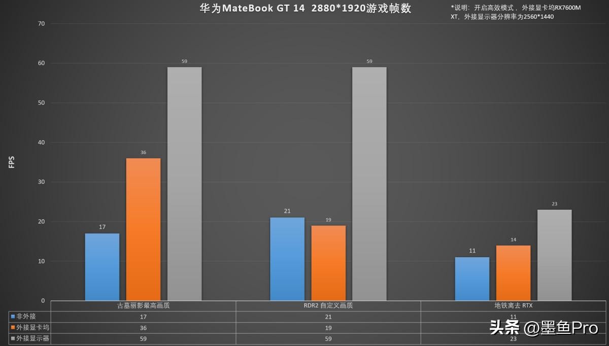 在性能提升层面,外接显卡后,若是就使用机身自带的屏幕,受到接口速率的限制,性能提升并不算明显,还会因为优化问题导致部分游戏场景出现了性能倒挂,而在连接显示器之后,性能提升还是比较可观的。