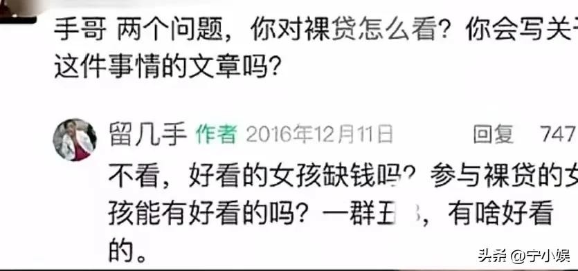 网友问:手哥,两个问题,你对裸贷怎么看,你会写关于这件事的文章吗?