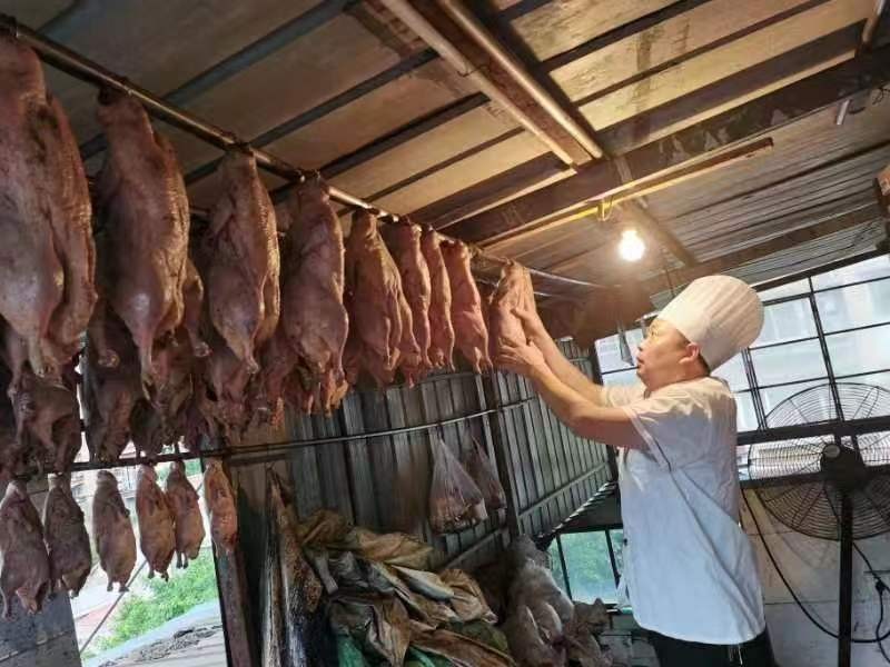 五福大酒楼老板李友胜亲自制作烤鸭