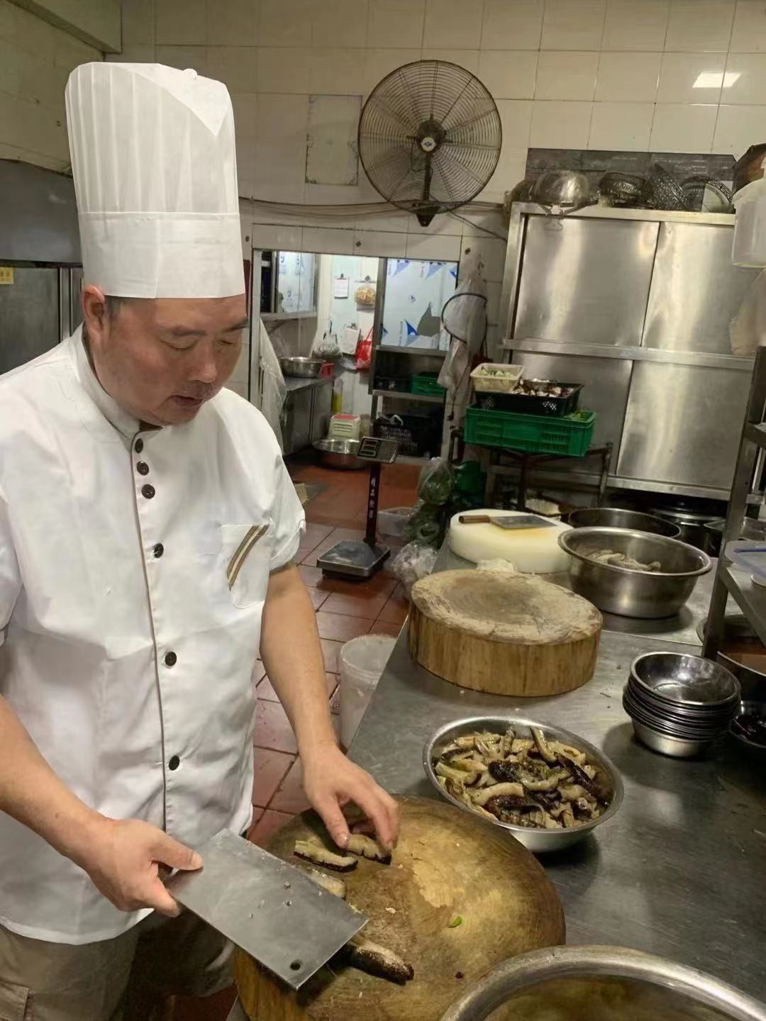 五福大酒楼老板李友胜亲自切菜