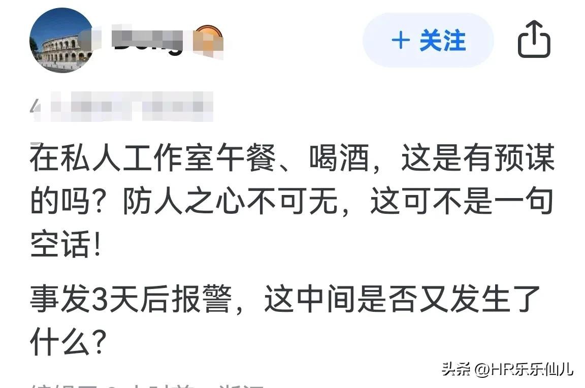 有网友直言不讳:在私人工作室午餐、喝酒,这是有预谋的吗?防人之心不可无,这可不是一句空话!这中间是否又发生了什么?
