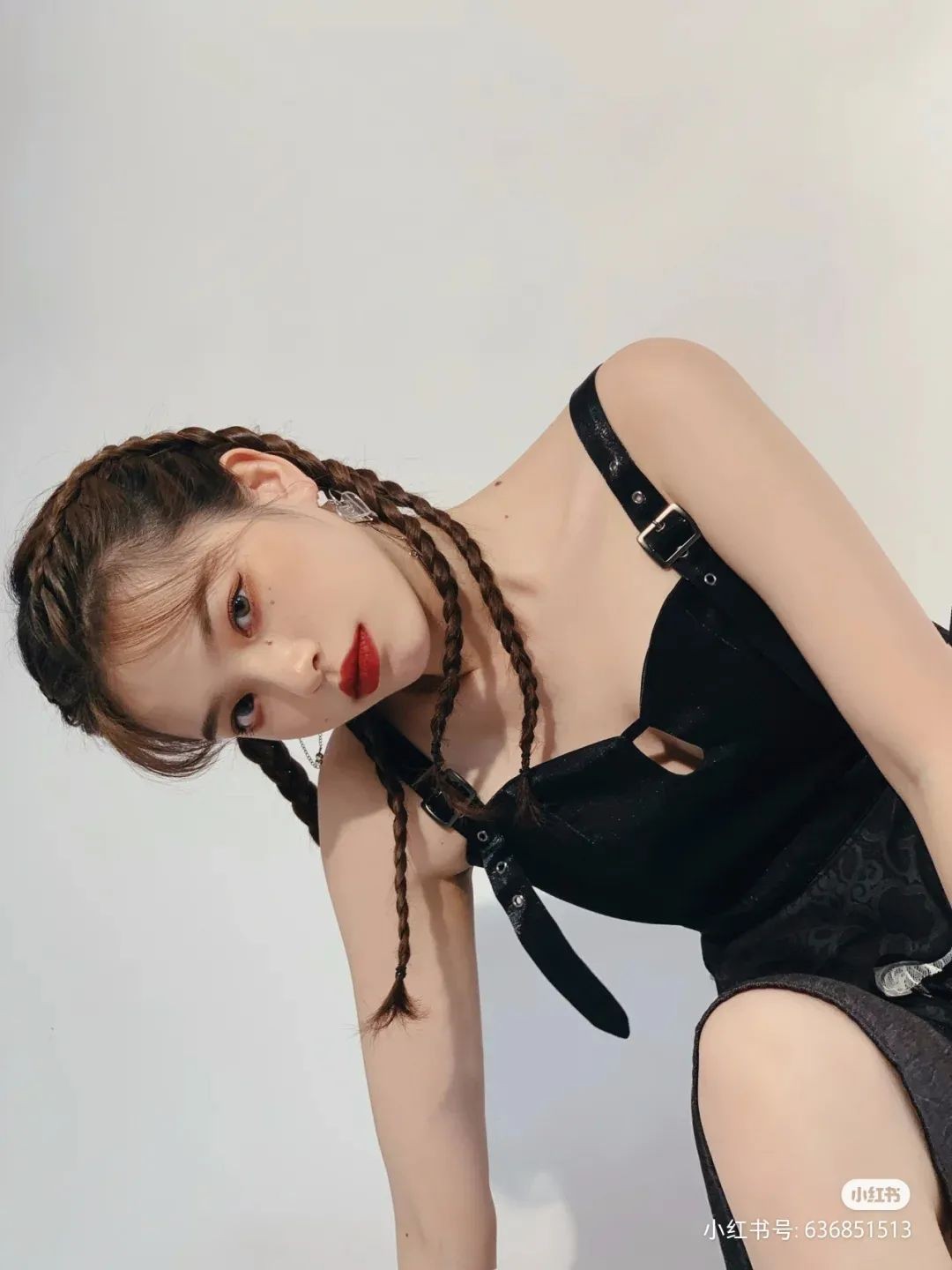 再看看球球的拳击辫发型,和常见的拳击辫有所不同,她的辫子是先从单股编下来,然后在耳后扎起来再分成两股,真的是A爆了!