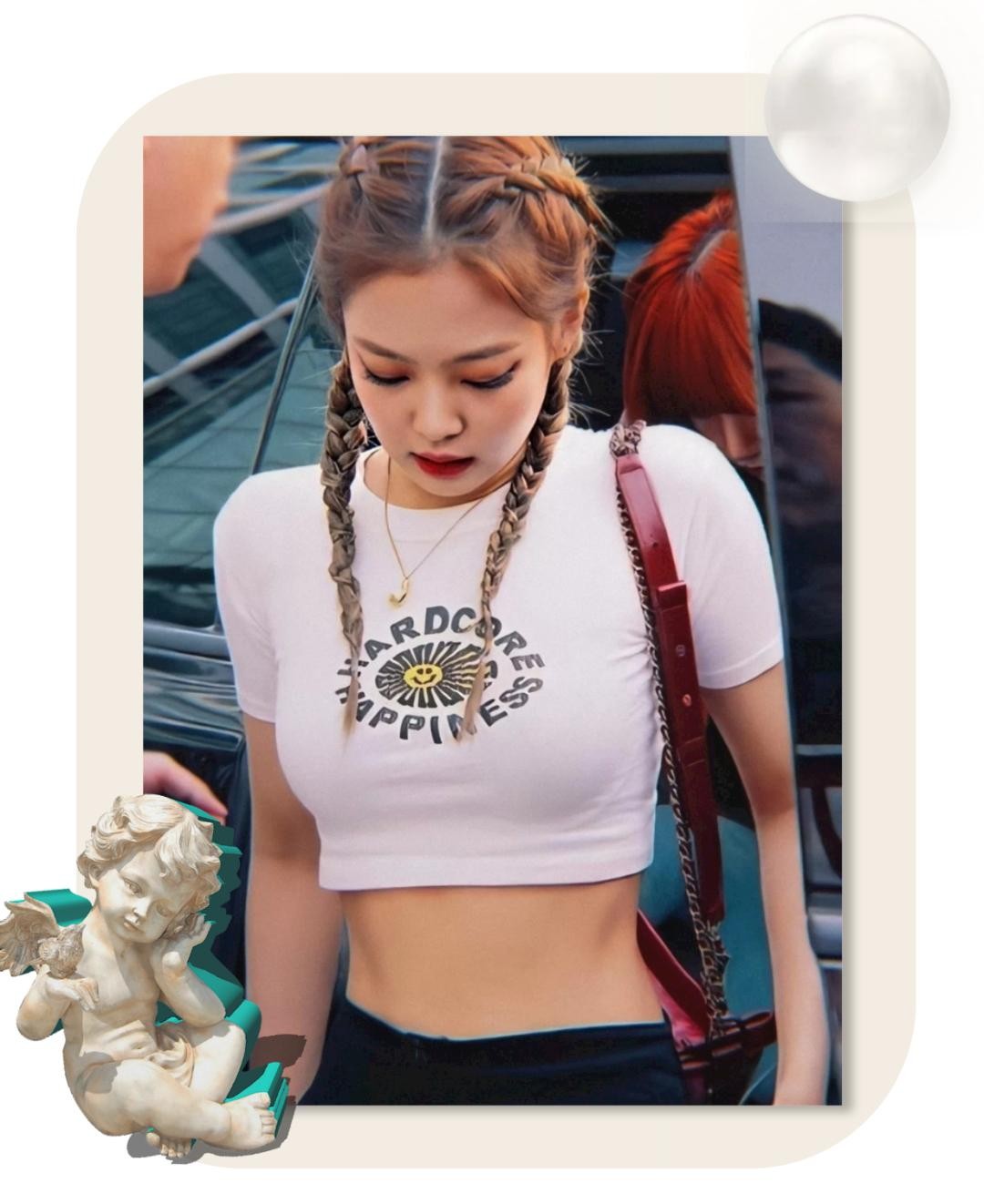 jennie出圈的甜酷风,拳击辫造型就给增色了不少。这款发型也当之无愧的成为了时尚icon的宠儿。