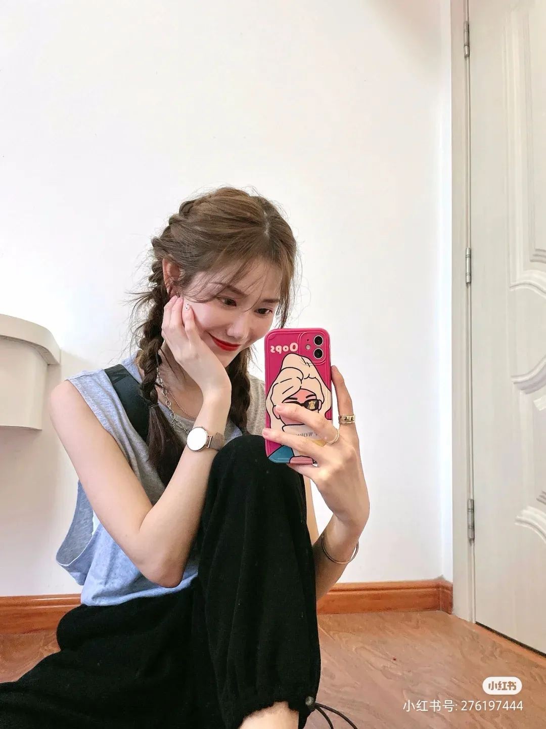 宽松无袖T和运动束脚裤,再搭配上清新的妆容,拳击辫同样也可以走少女路线的甜美可爱。