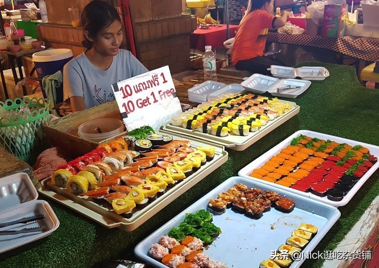 这里售卖的吃的,稍微比其他夜市贵一些一般贵个10-15泰铢