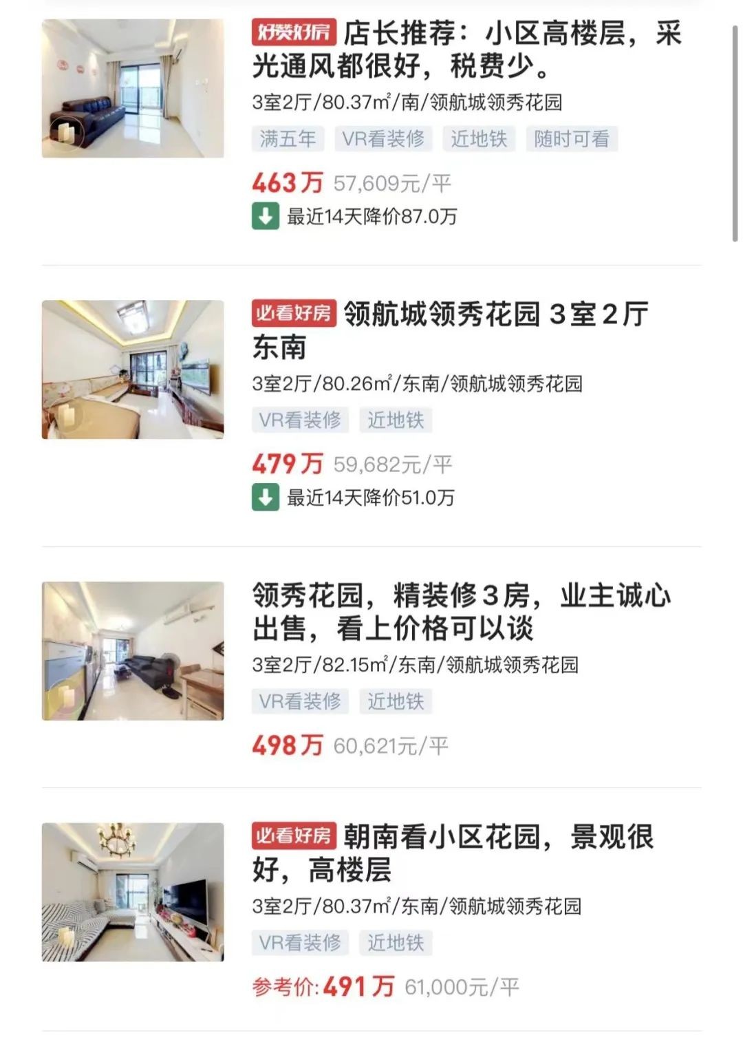 宝安区近几年流动性最好、成交量最大的小区领航城,岳老师截图了领航城三期挂牌低于指导价的房源,主力80㎡户型来对比一下2019年四季度的价格。深圳当下最应该买的房子