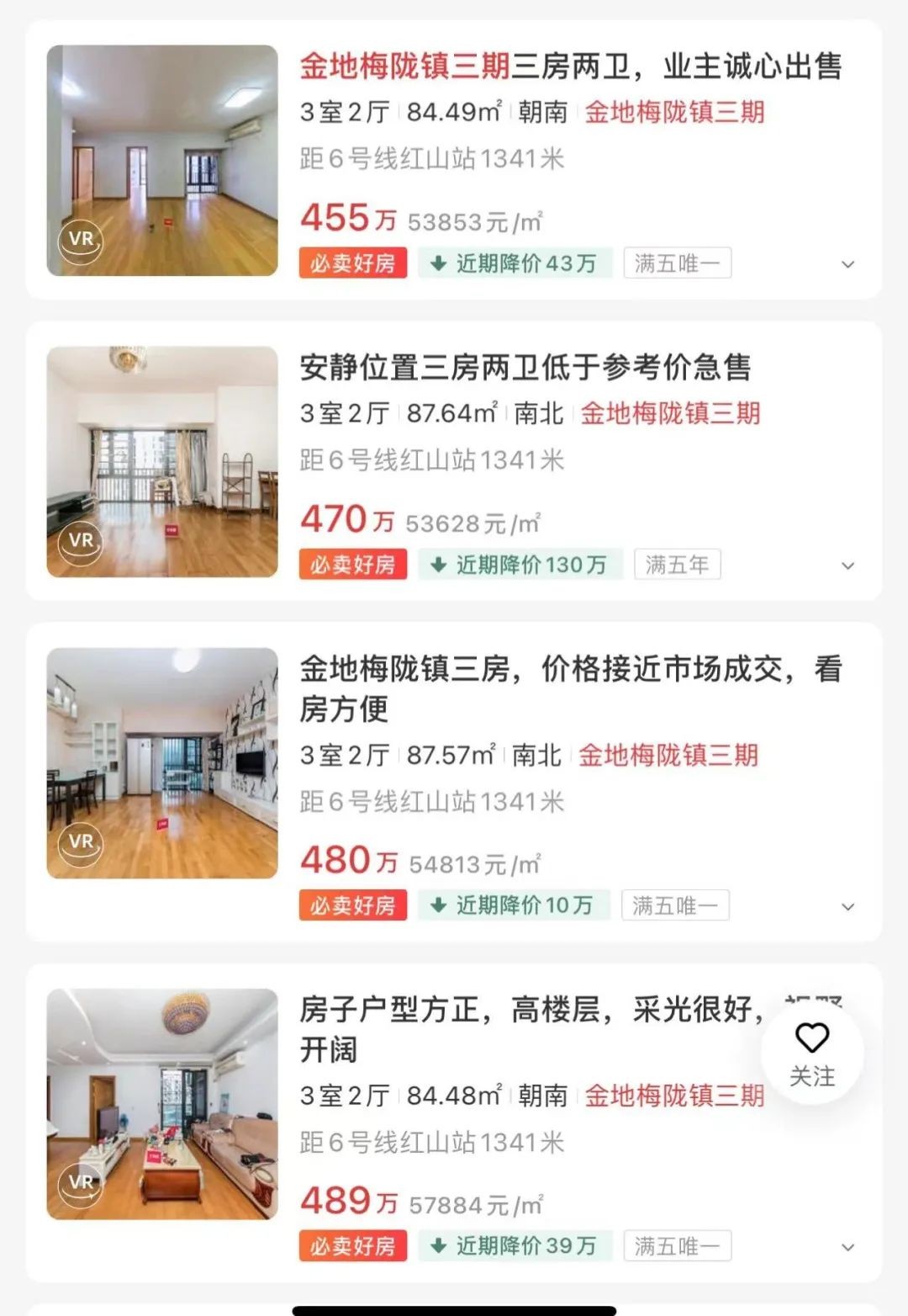龙华区近几年流动性最好、成交量最大的小区金地梅陇镇,岳老师截图了金地梅陇镇三期挂牌低于指导价的房源,主力85㎡户型来对比一下2019年四季度的价格。深圳当下最应该买的房子
