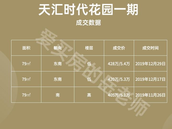 ▲天汇时代花园一期成交数据:2019年四季度▲