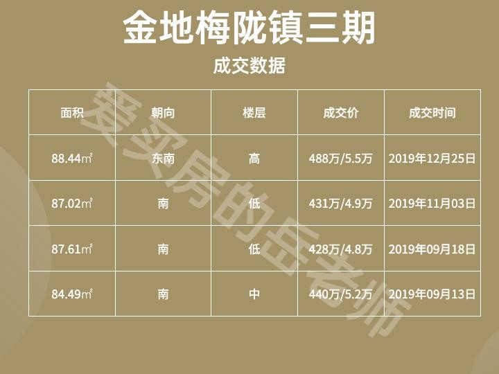 ▲金地梅陇镇三期成交数据:2019年四季度▲