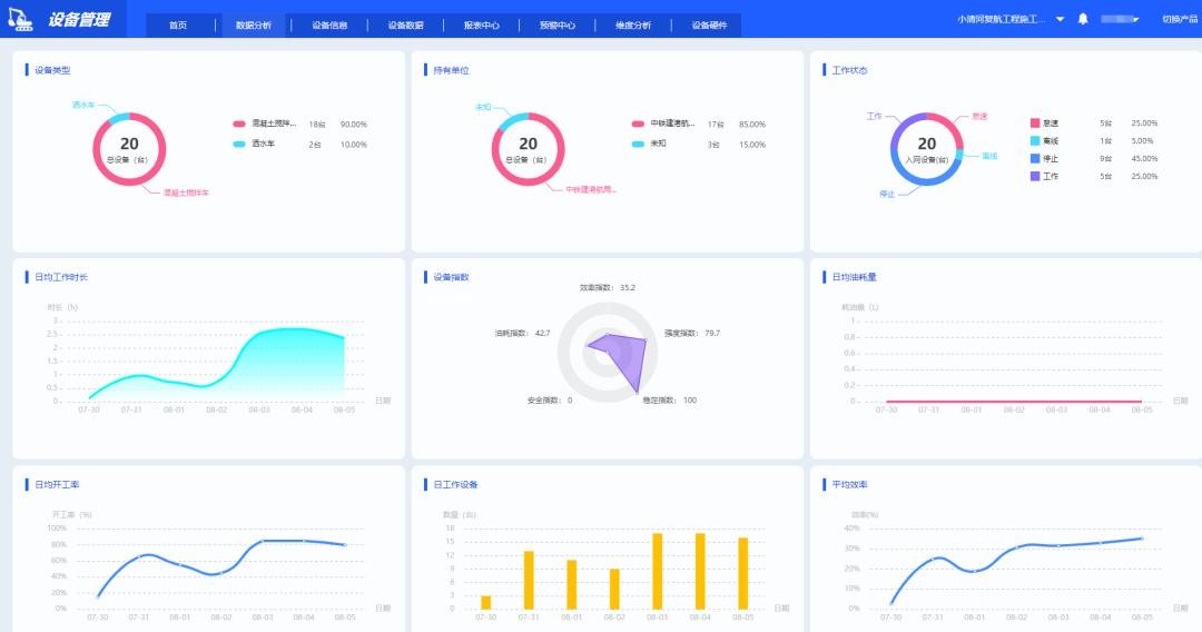 由于目前项目部自有和租赁机械多,而且项目分布点多面广,设备在项目间的频繁调动,且各类设备来源不同、品类不同、工作时间不同,从而使得设备调度、维护、管理难度都很高。