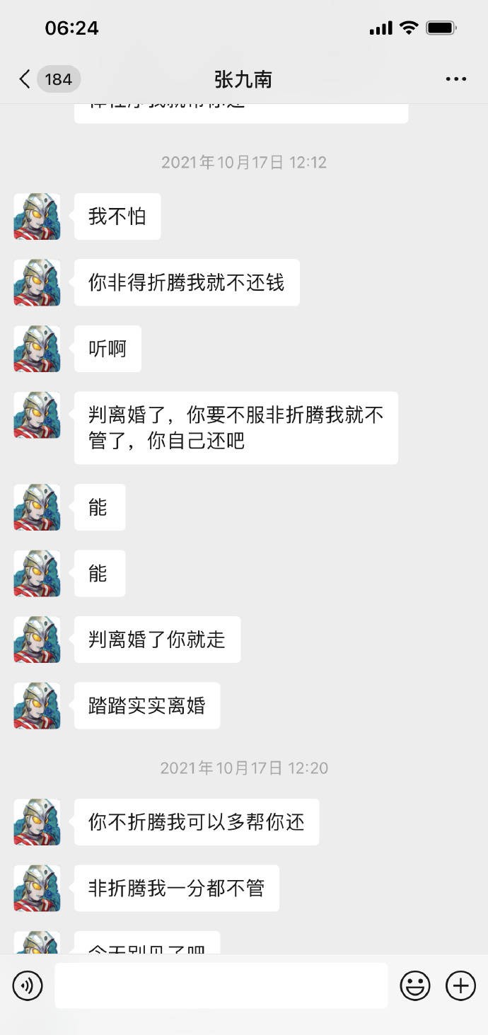 在离婚诉讼期间,双方又再次发生冲突,为了孩子的前途,并没有让张九南负刑事责任,不过张九南并没有领情,而是指着女方的妈妈说:老不死的,你不要威胁我……该网友还表示对待粉丝的态度也有问题,粉丝追求他,他都会看好看与否,不好看直接背后骂人家,长得难看等等,做事很极端。