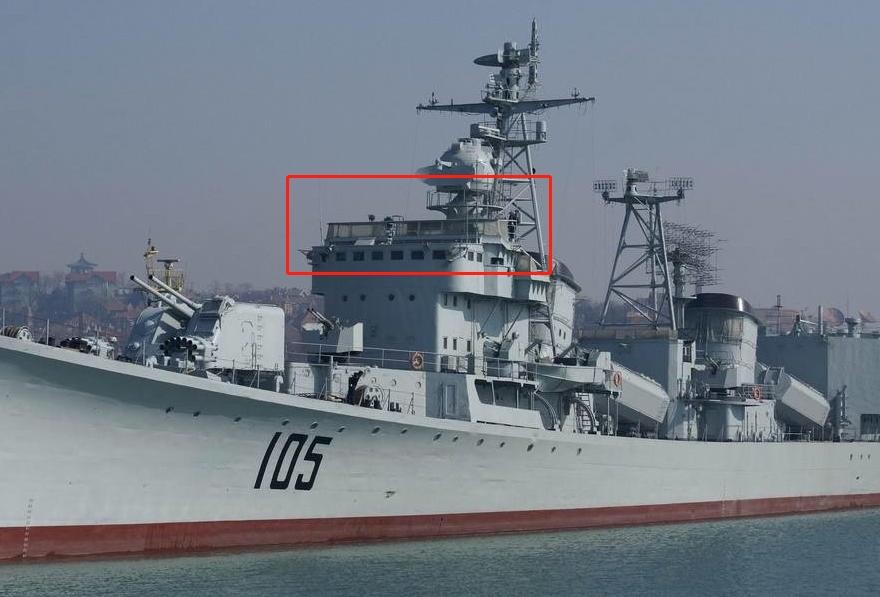 与苏联原版56型高寒区环境使用相比,051的设计明显考虑到我海军的实际操舰和作战地域带来的影响。其舰桥前端甲板舱室有所加长,一方面是为舰上指挥控制与通讯设备争取更多空间,另一方面是比较能适应南海地区炎热的气候。除了主舰桥外,航海舰桥与56型一致,都是露天式,航海舰桥内设有完整的航行控制、通讯和导航。后烟囱前端的甲板室上设置了备用舰桥和操舵室,备用舰桥同样也是露天式,也同样设置完整的航行控制、通讯和导航。当主舰桥受损或通信与操纵装置损坏后仍能保有一定的操控和指挥能力。051G1/G2设计时采用全封闭舰桥。