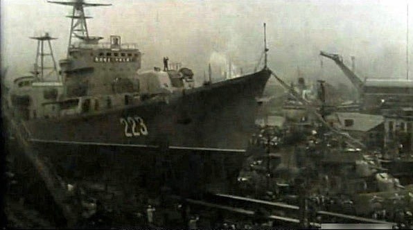 除了海军技术积累的作用之外,在70-90年代051是海防的首要力量。下面这张133“重庆”舰正面拦截苏联“伏龙芝”号导弹巡洋舰,3700吨对抗25000吨,这是莫大的勇气在支撑着保卫祖国的动力。1997年3月22日,"珠海"号导弹驱逐舰访问了美国"海军之城"圣迭戈,是051型任务最远的地方。