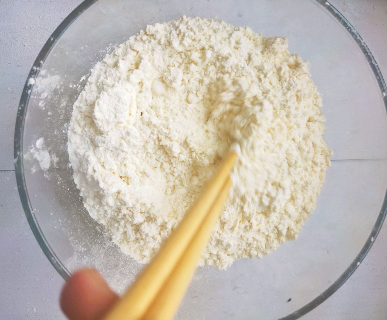 5.碗中倒入200克低筋面粉和6克小苏打、2克盐搅拌均匀;